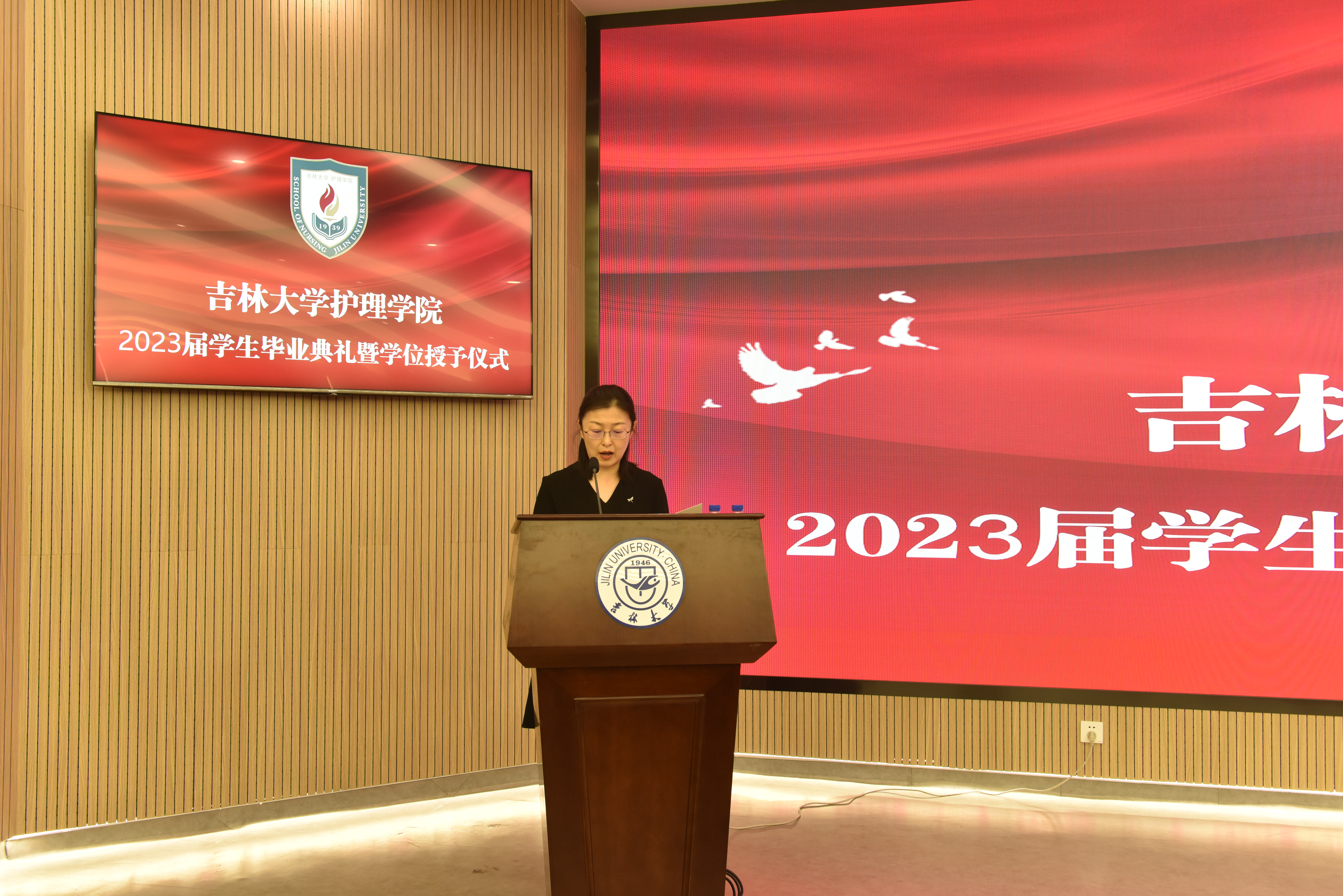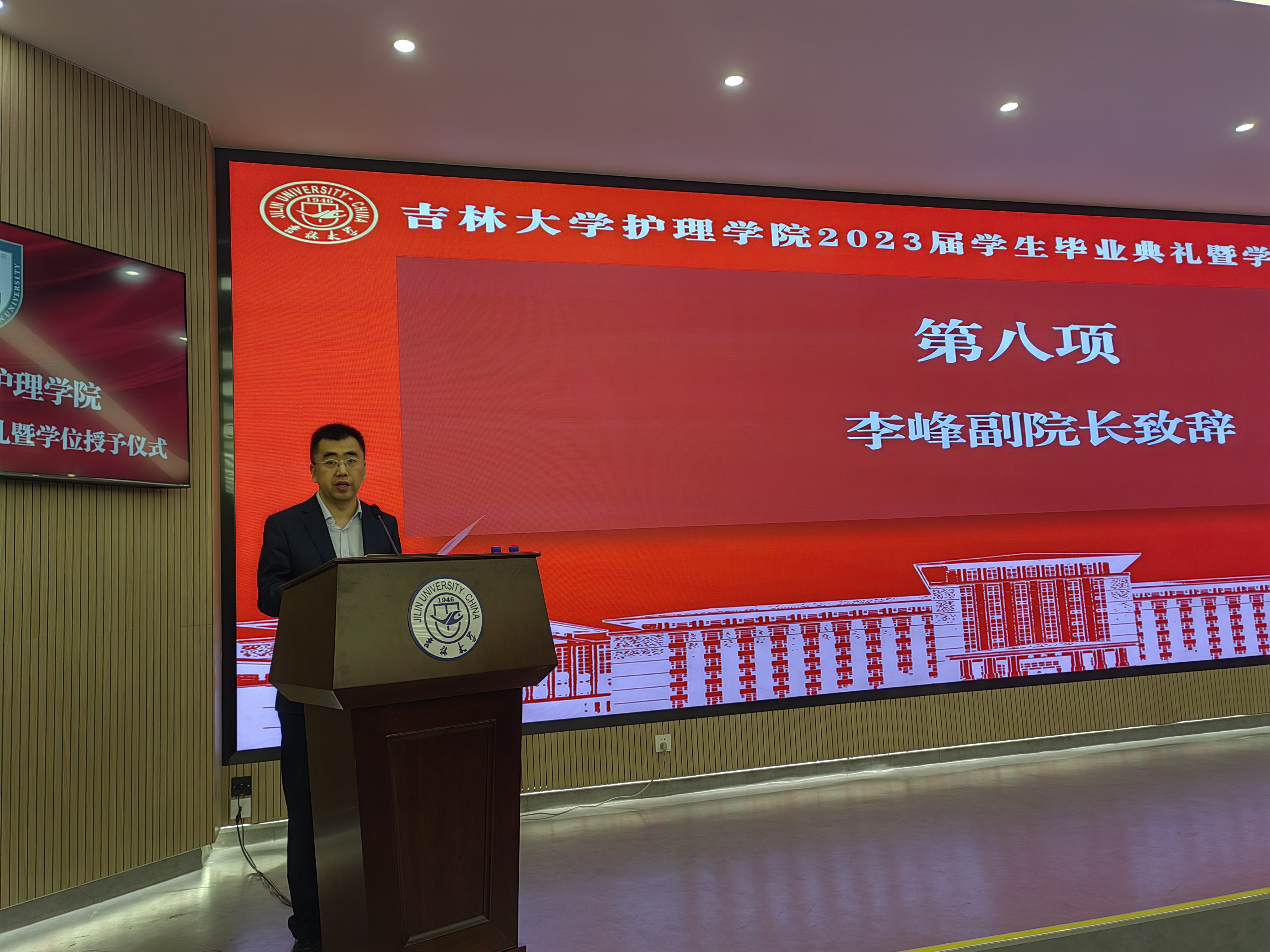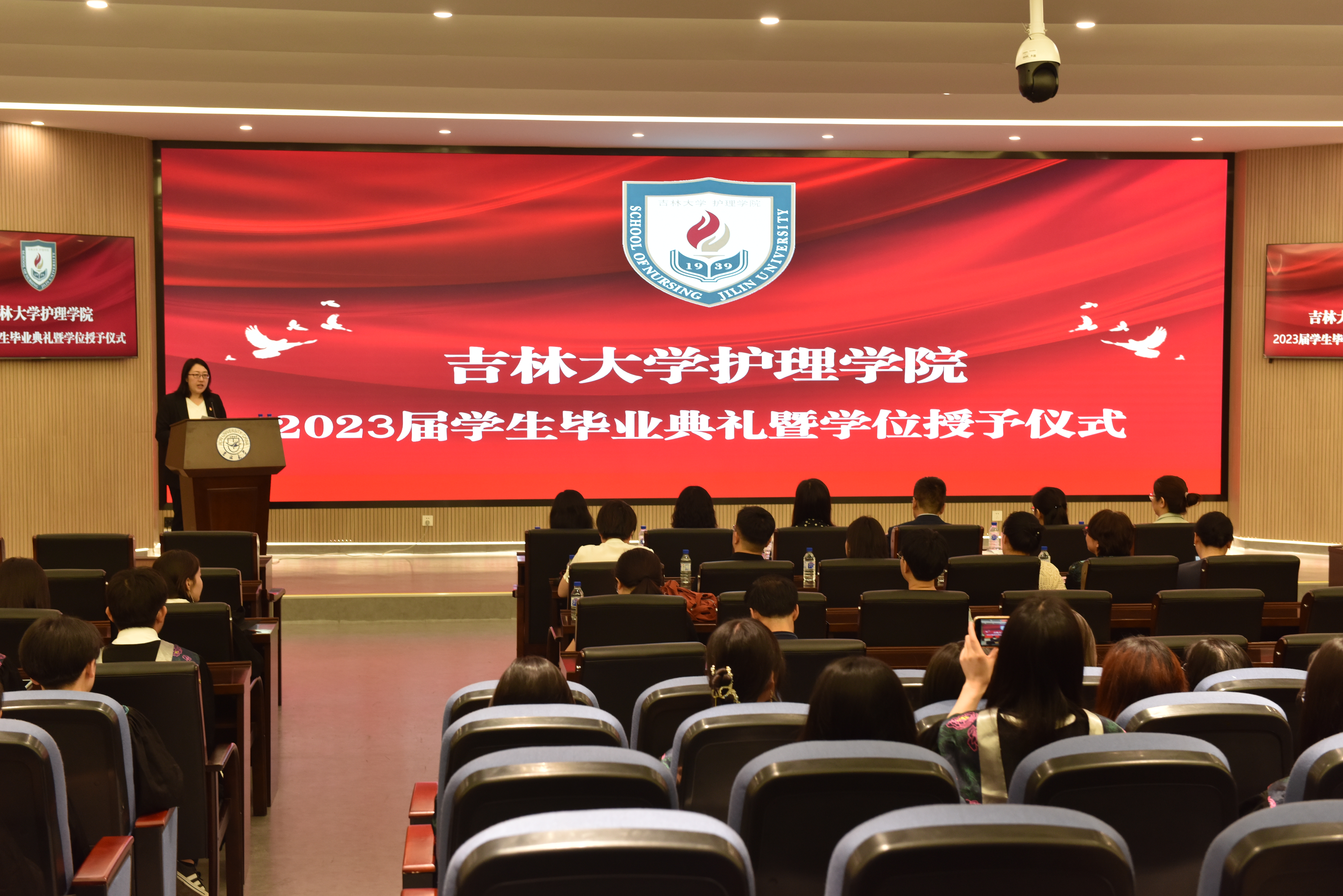 2023届学生毕业典礼暨学位授予仪式在新民校区第一教学楼401白求恩大讲堂隆重举行。学院全体领导班子,学院学位委员会、学术委员会、教学委员会主任,各教研室、科室主任,研究生导师、毕业年级班主任,以及2023届全体本科生和研究生参加了毕业典礼。典礼由学院党委副书记兼副院长葛宗梅主持。