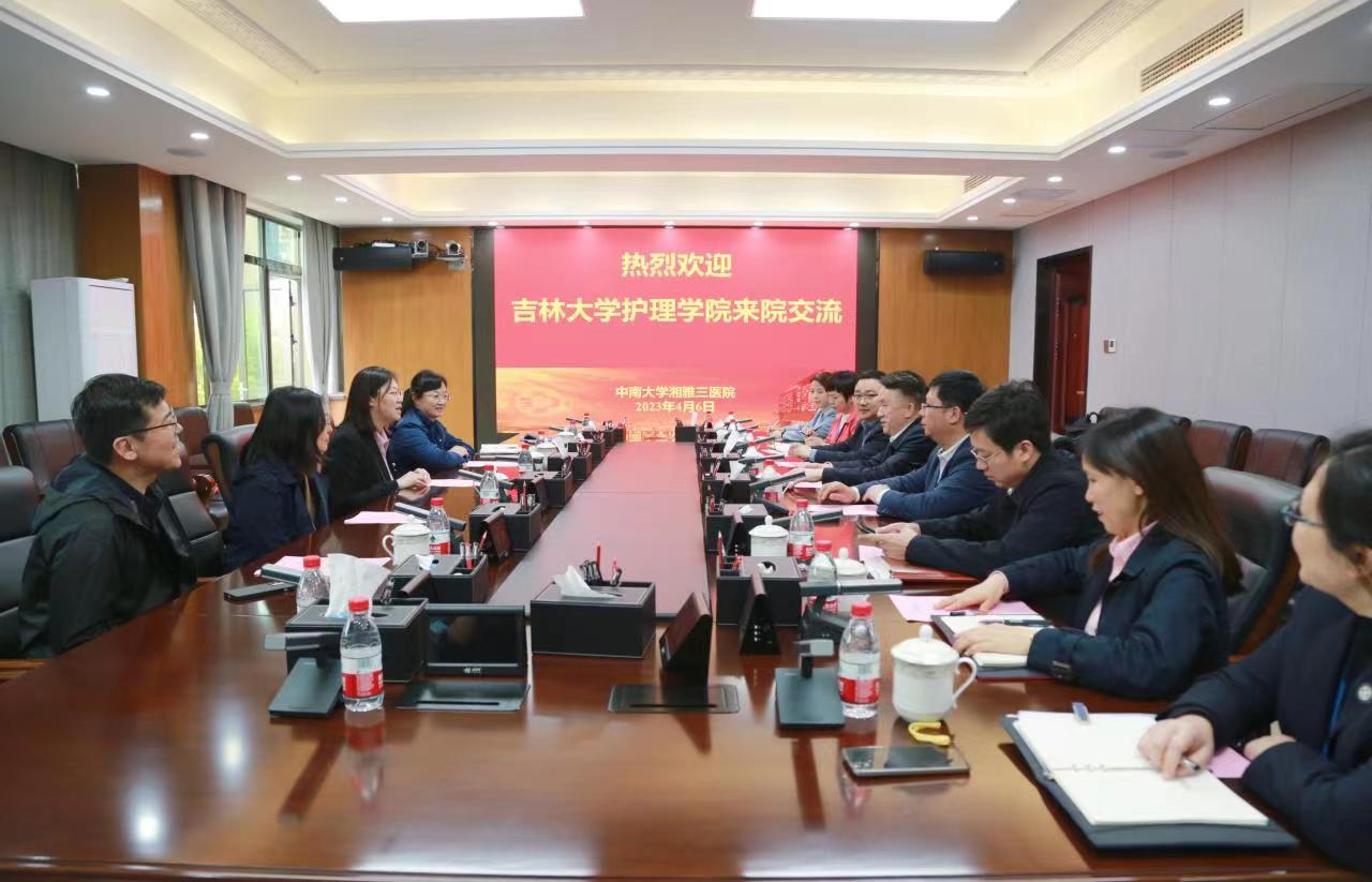党委书记韩月波、副院长李昆等一行5人前往中南大学湘雅三医院进行调研交流。中南大学湘雅三医院党委书记何庆南、党委副书记杨飞龙、副院长曹科、党委办公室主任许泽华、护理部主任严谨、护理教研室主任毛平等参加调研座谈会。杨飞龙副书记主持会议。