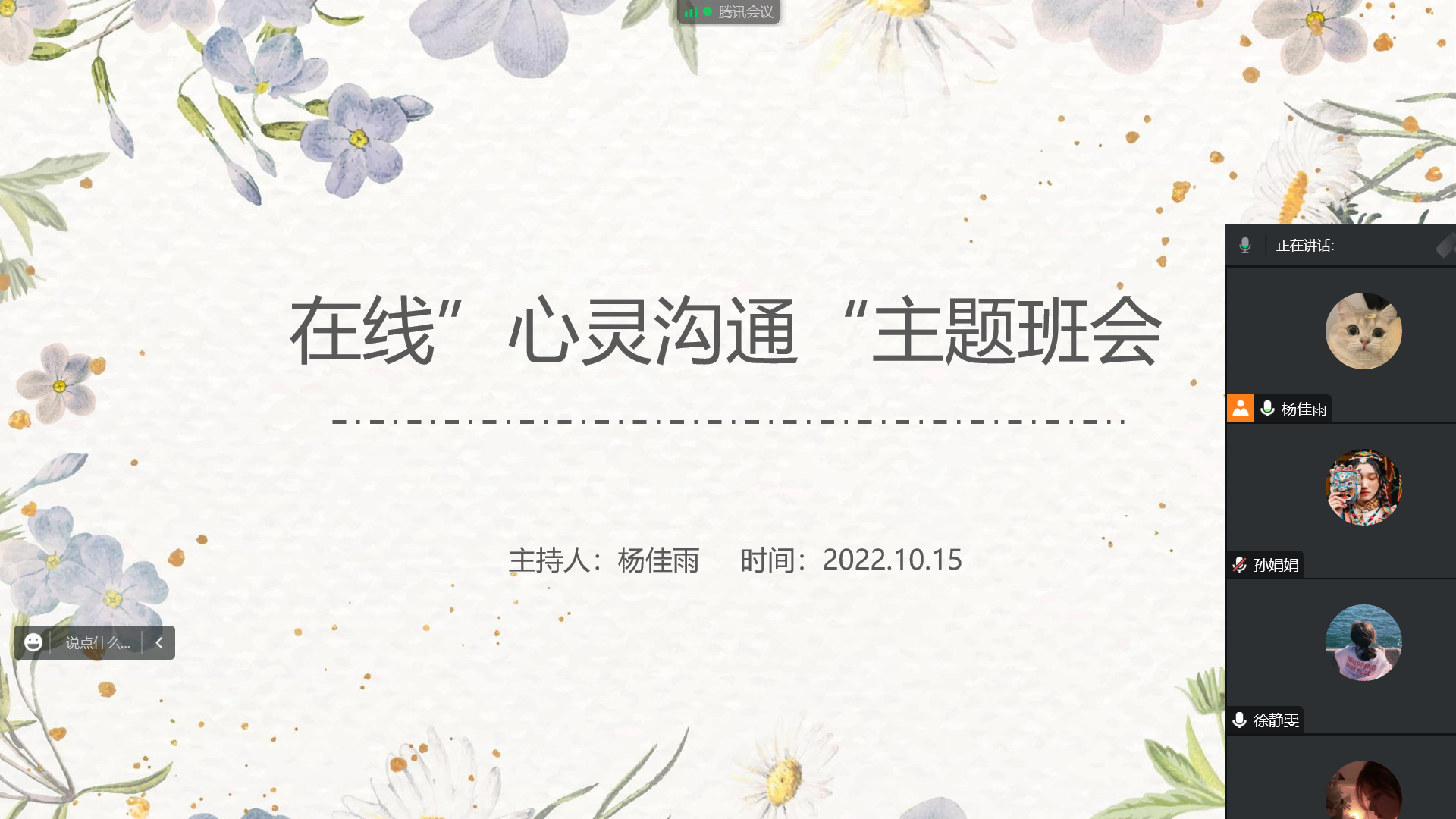 2022级研究生班级于10月15日晚18:30在线上开展了新生团体心理辅导活动——线上“心灵沟通”主题班会。本次活动由看漫画手机版