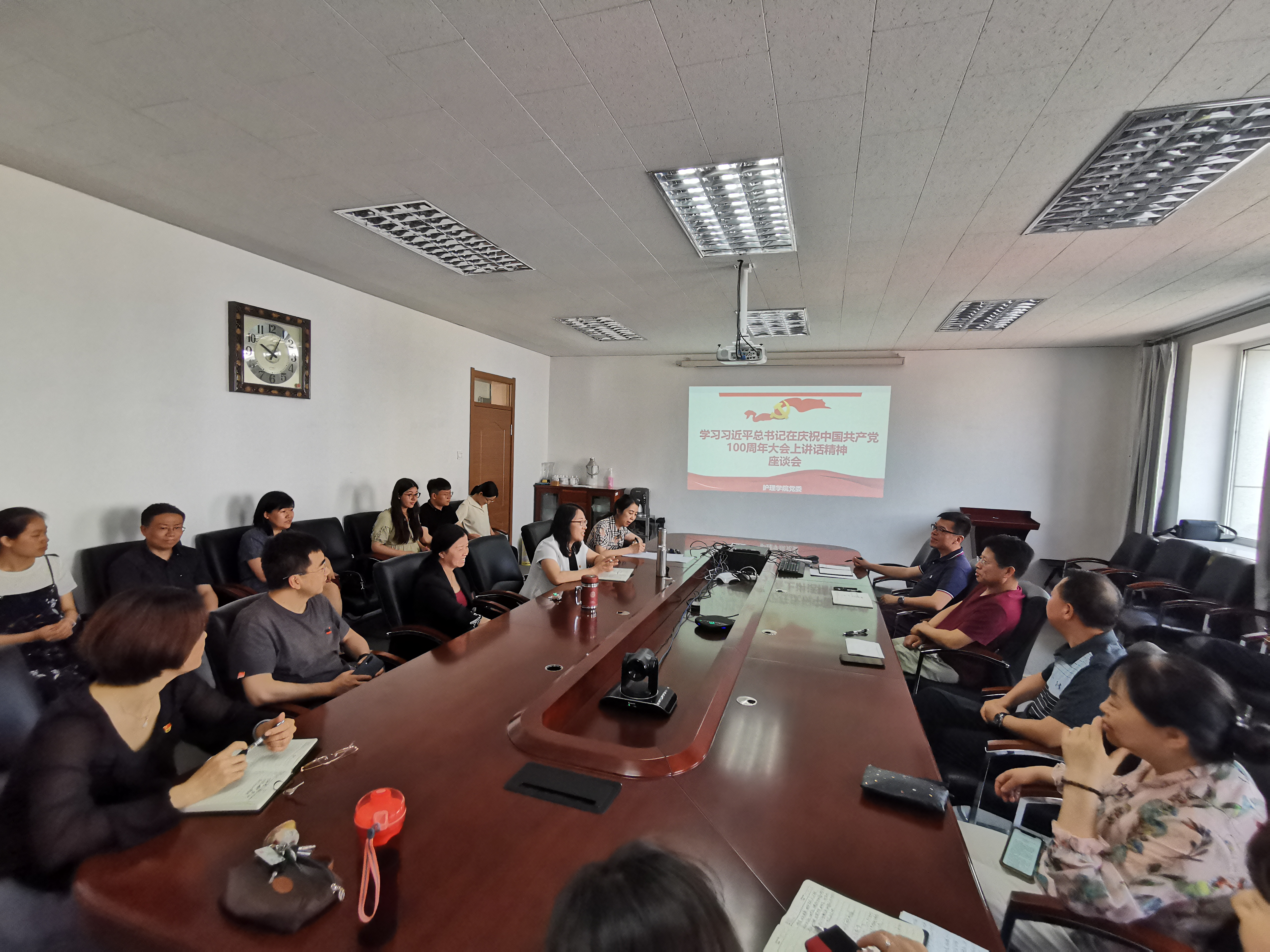 最后,学院党外人士代表陈立院长提出,学院全体党员和全体师生要认真学习习近平总书记在庆祝中国共产党100周年大会上的重要讲话精神,继续加强党史教育学习,要坚决拥护中国共产党的领导,紧密团结在以习近平同志为核心的党中央周围,自觉做习近平新时代中国特色社会主义思想的坚定信仰者、忠实实践者;要爱党爱国,做到不忘初心、牢记使命,坚定理想信念,增强责任担当,以实际行动努力为社会、为人民做贡献;要爱校爱院,在岗爱岗,严格履职,主动作为,负起作为师者的责任,教书育人,努力在教学、科研、管理工作中取得更大成绩,推动学院更好更快发展。
