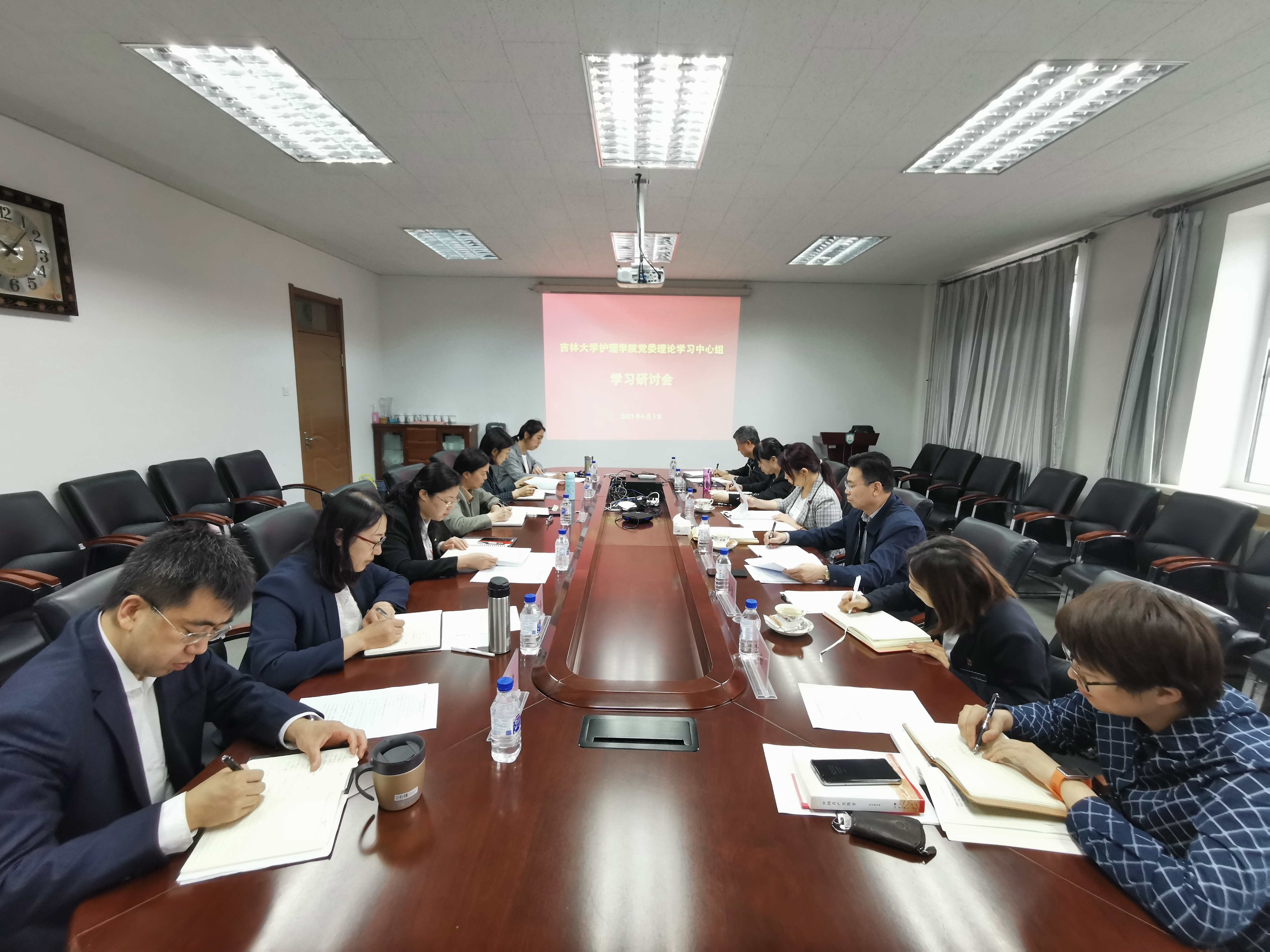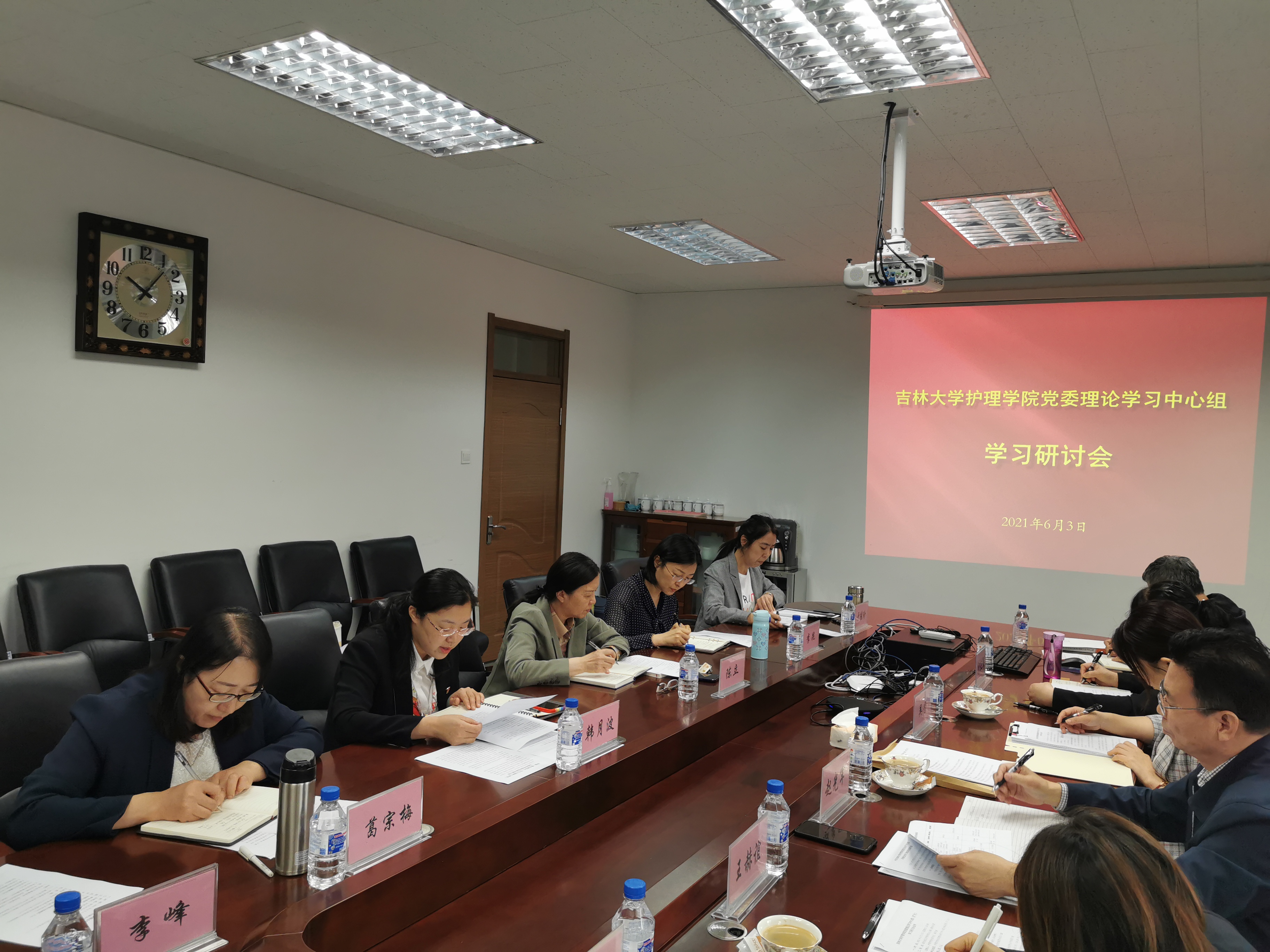 会上,韩月波简要汇报了学院党史学习教育开展情况。党委委员分别领学了《深入学习习近平关于教育的重要论述》中的章节内容和“习近平对黄大年同志先进事迹作出重要指示精神”“习近平总书记在全球健康峰会上的讲话精神”。