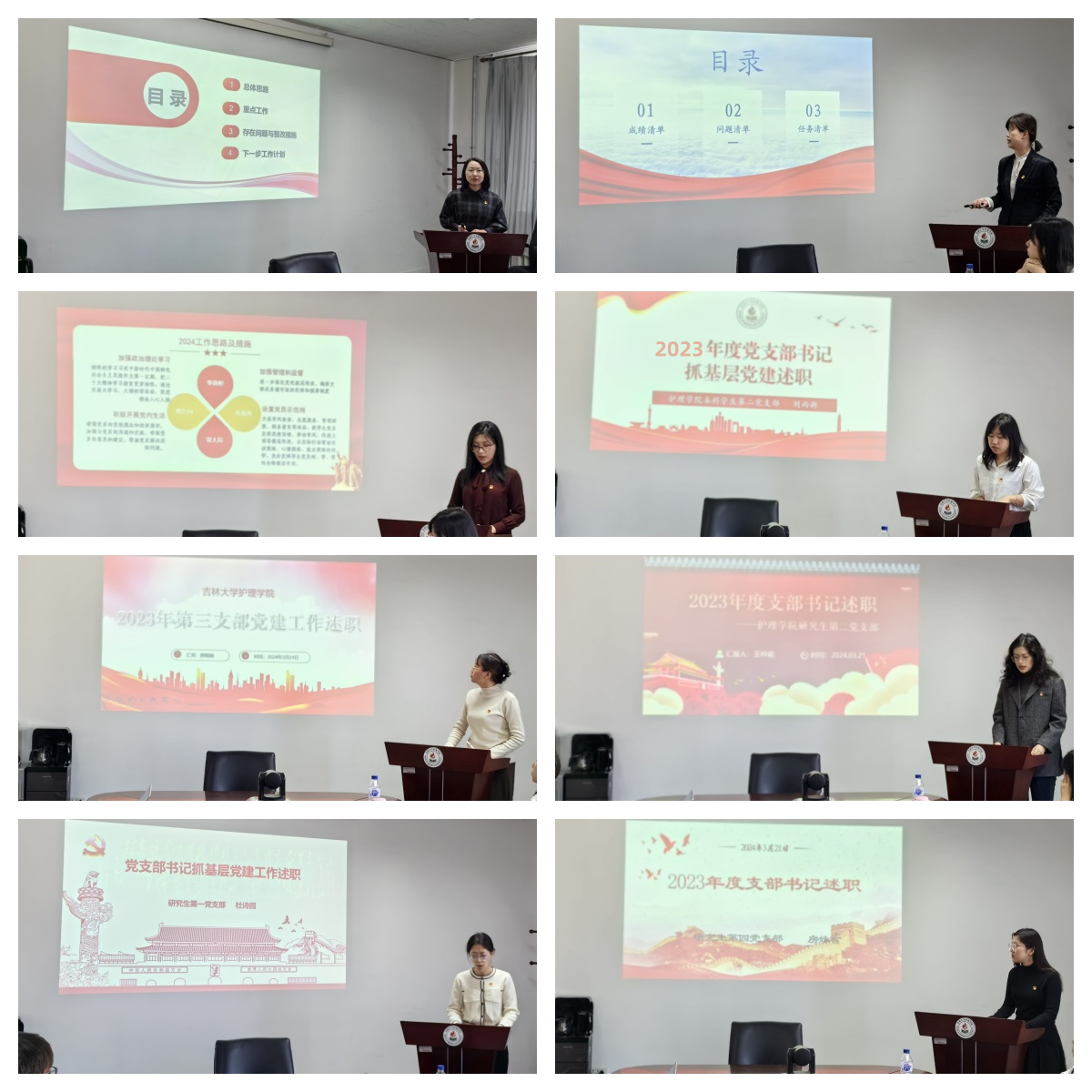 韩月波强调,党支部书记述职评议工作是推进基层党建工作的重要举措,各党支部要高度重视、全面检视,以保证此项工作的实效。党支部书记对2023年度抓基层党建工作进行认真梳理并撰写述职报告。会上,8名党支部书记进行现场述职,以PPT图文并茂的形式,对学习贯彻习近平新时代中国特色社会主义思想和开展主题教育情况、增强基层党组织政治功能和组织功能情况、提升党的组织体系建设整体效能情况、发挥党员先锋模范作用情况、落实基层党建责任制情况进行汇报,紧扣基层党建难点堵点痛点问题做了分析和反思,并提出了下一步的改进办法和工作思路。