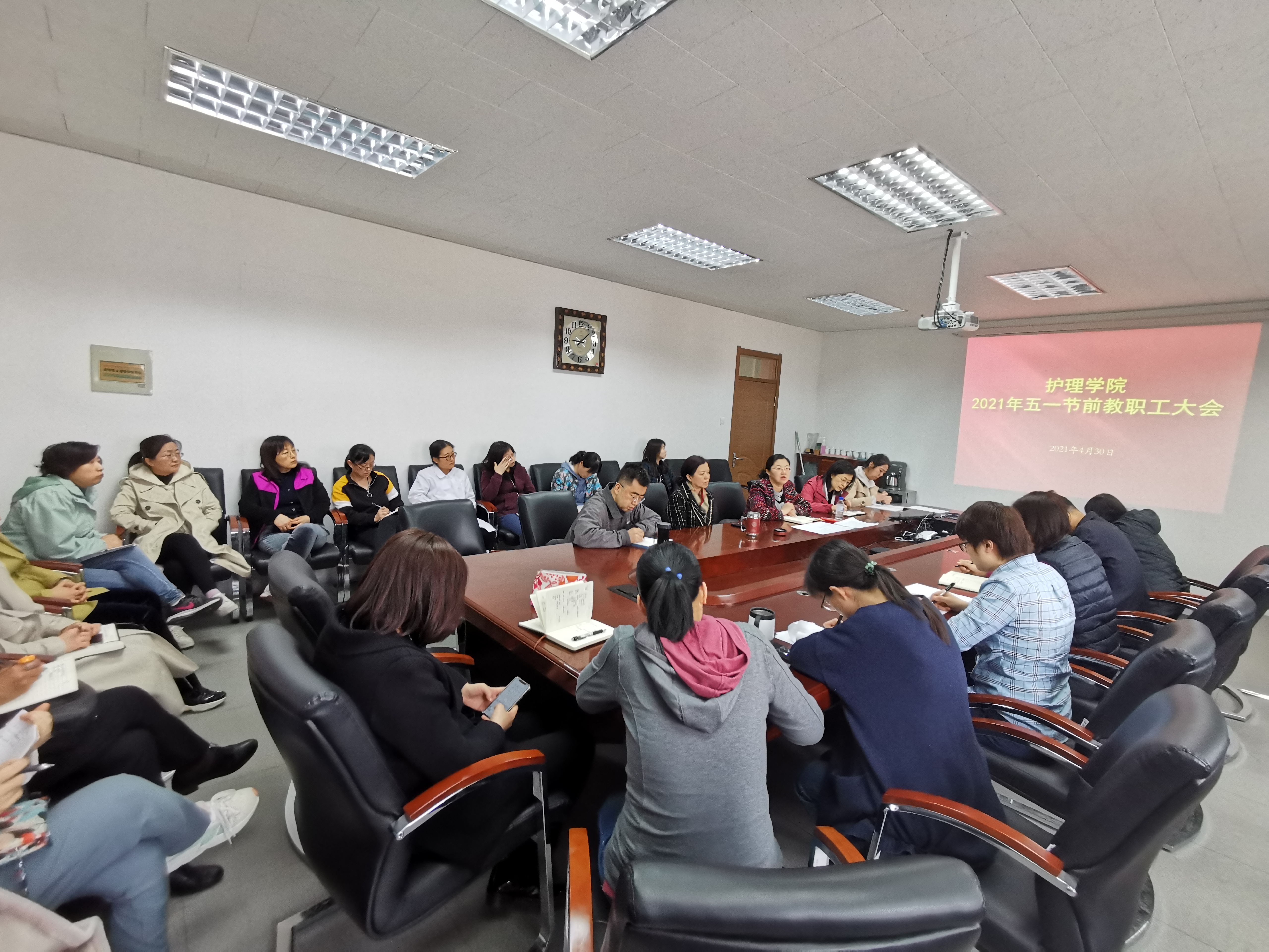 本次全院教职工大会的召开,部署落实“五一”假期学院安全稳定工作,确保师生平安祥和过节;对加强巡察整改、党史学习教育的有序推进,体现了我院师生以昂扬奋进的姿态迎接中国共产党百年华诞的精神风貌。