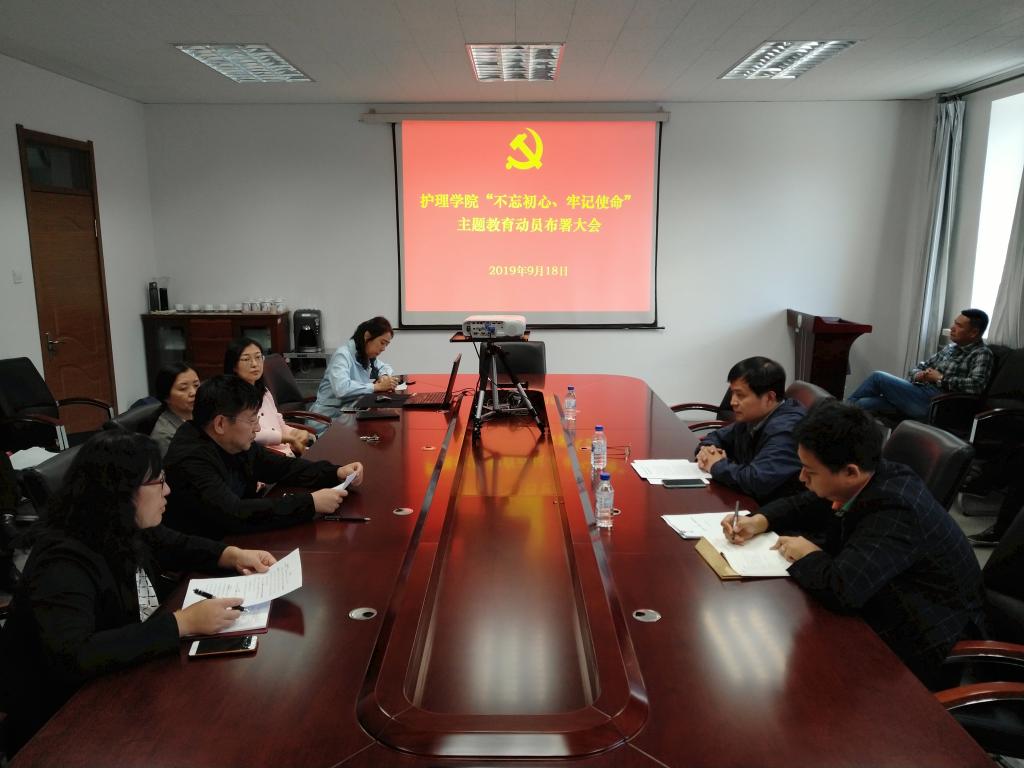 党委在三楼会议室召开 “不忘初心、牢记使命”主题教育动员部署大会。学校第10指导组副组长季洪涛同志、组员高文松同志,学院领导班子全体成员、党委委员、纪委委员、各党支部书记、科级干部、各教研室主任、全体教职工、学生代表参加了会议。会议由学院党委副书记兼副院长葛宗梅同志主持。