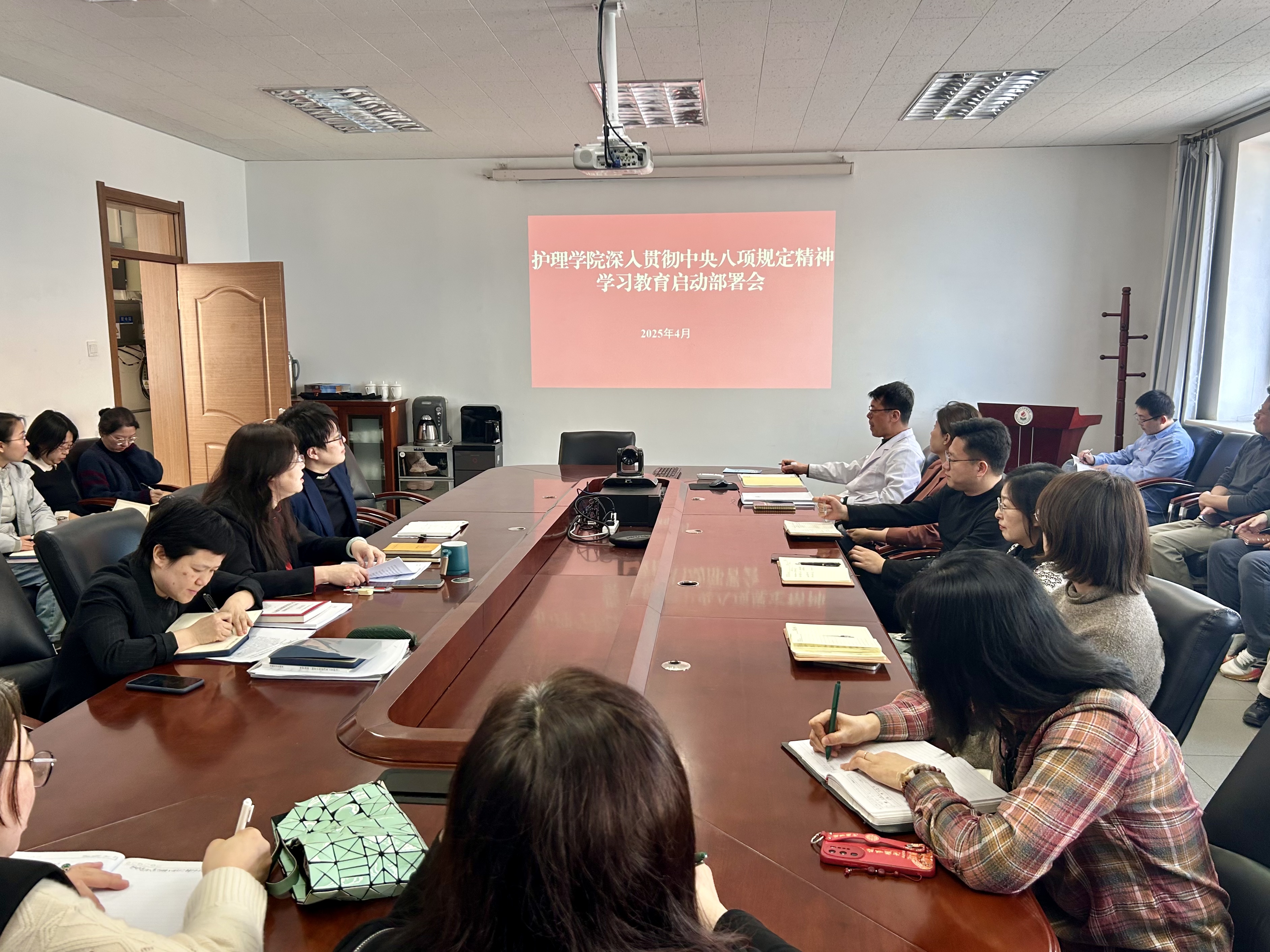 召开深入贯彻中央八项规定精神学习教育动员部署会。全院教职工、学生党支部书记参加会议,会议由学院党委书记韩月波主持。