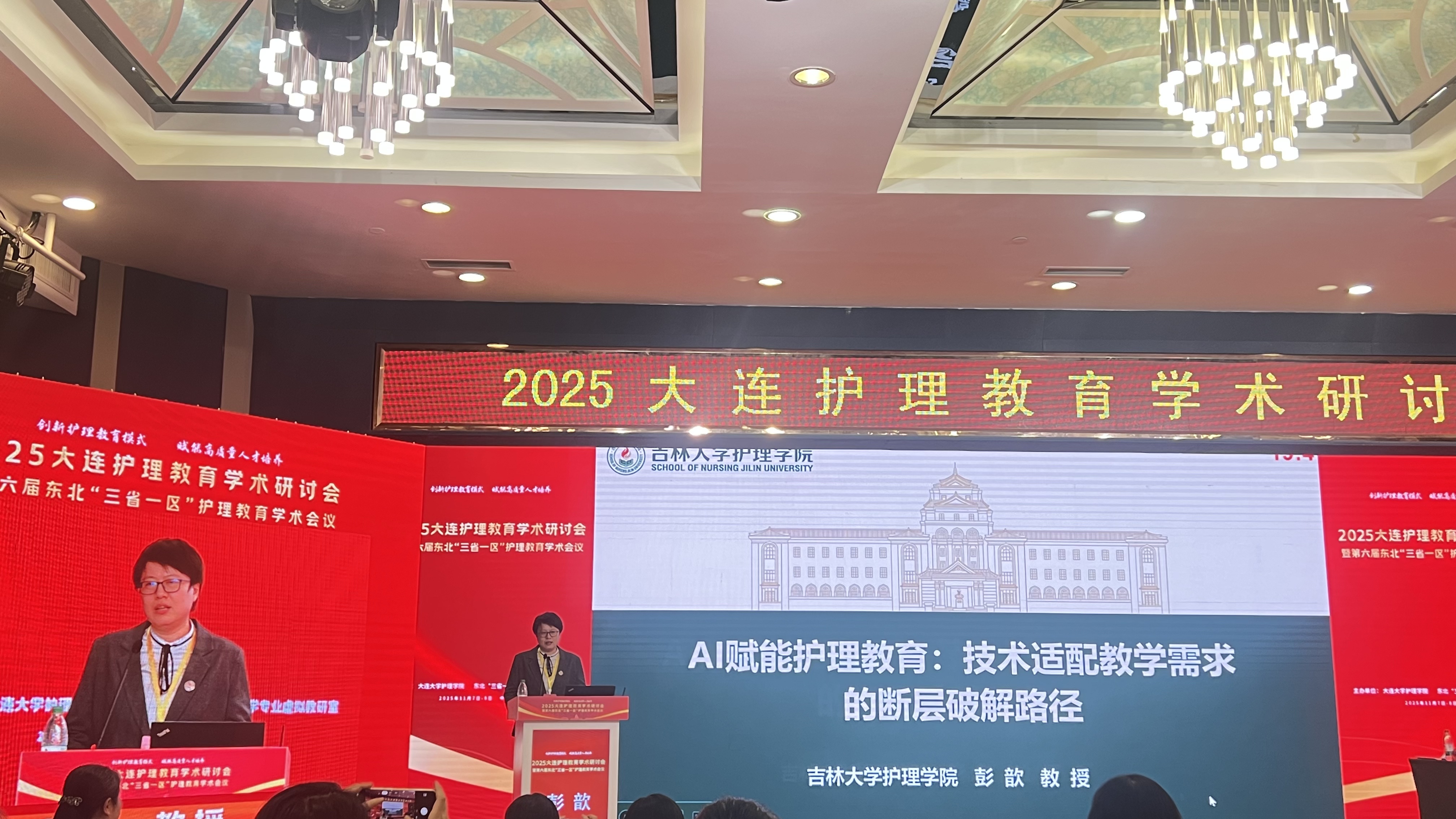 两项会议分别聚焦护理教育高质量发展与国际康养合作,汇聚了国内护理教育骨干、中日两国健康照护领域权威专家及科研学者,围绕核心议题展开深度研讨与成果交流。副院长彭歆教授在11月7日的护理教育学术研讨会上“以AI赋能护理教育”为主题,对技术适配教学需求的断层破解路径进行了主旨报告,其分享内容得到现场参会者的关注与认可,推动了护理学专业教育质量的进一步提升,也为我院优化护理教学体系、提升人才培养质量提供了重要参考。