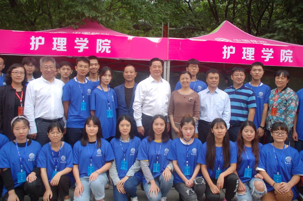 下午,校党委书记杨振斌教授、副书记冯正玉教授、学生工作部张国兴部长等领导来到五月花广场,对迎新现场工作进行视察与指导,亲切询问学院新生报到情况,并对我院的迎新工作给予肯定,工作人员们深受鼓舞,更努力地投入到接下来的迎新工作中。