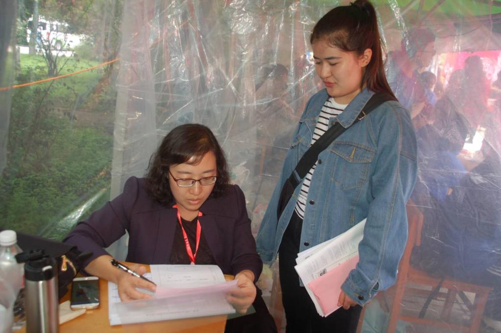 我院志愿者们陆续引导着新生来到五月花广场的报到处,在此办理业务的志愿者们耐心地指导着新生完成所有报到流程。之后志愿者们指引新生体检,并带领他们入住寝室。值得一提的是,我院有40名同学作为新生体检志愿者协助校医院完成引导、血压测量等体检工作,校医院对志愿者们的细心工作给予肯定。