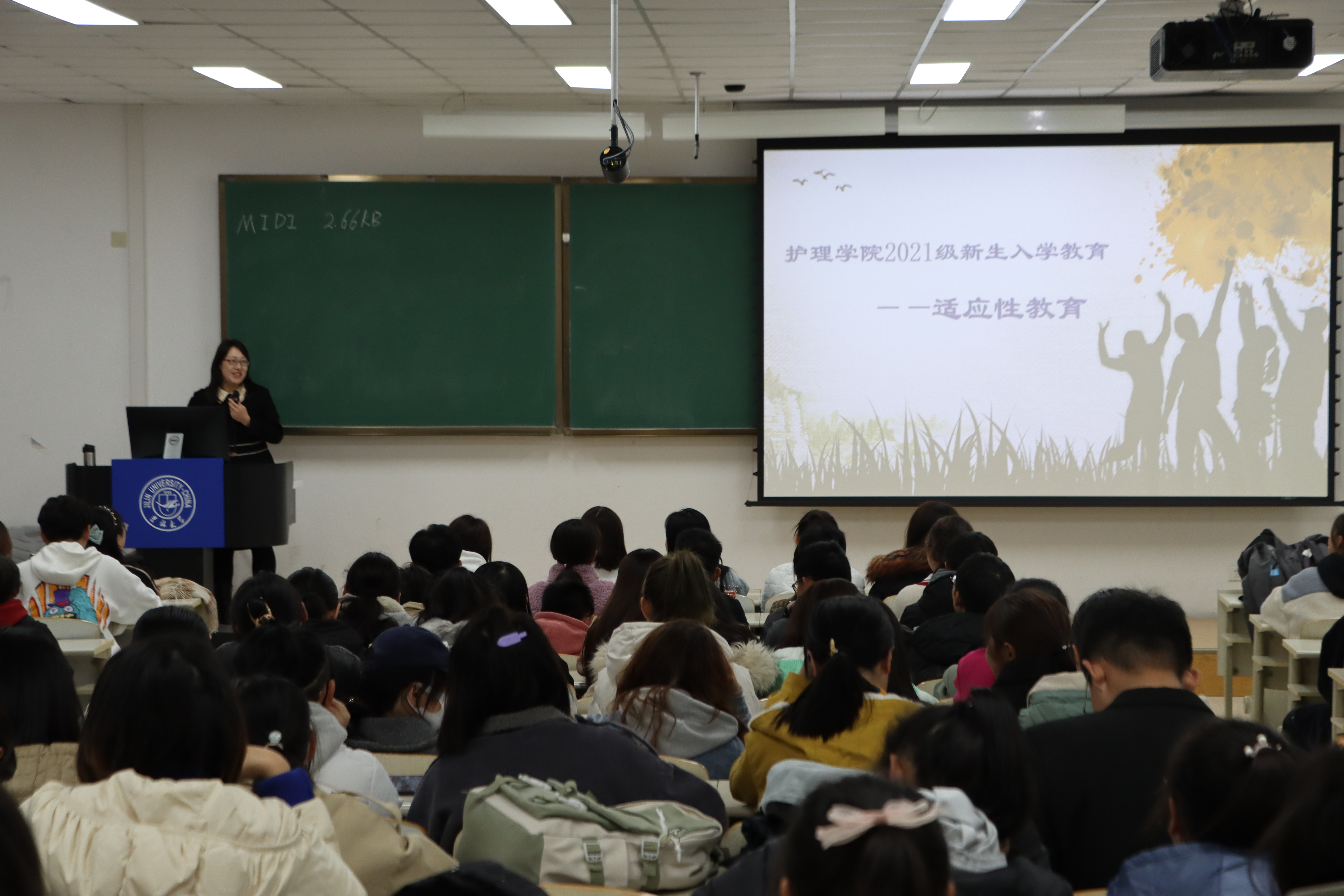 召开2021级年级大会,学院党委副书记兼副院长、2021级辅导员葛宗梅老师对2021级本科新生进行了适应性教育和心理健康指导教育。