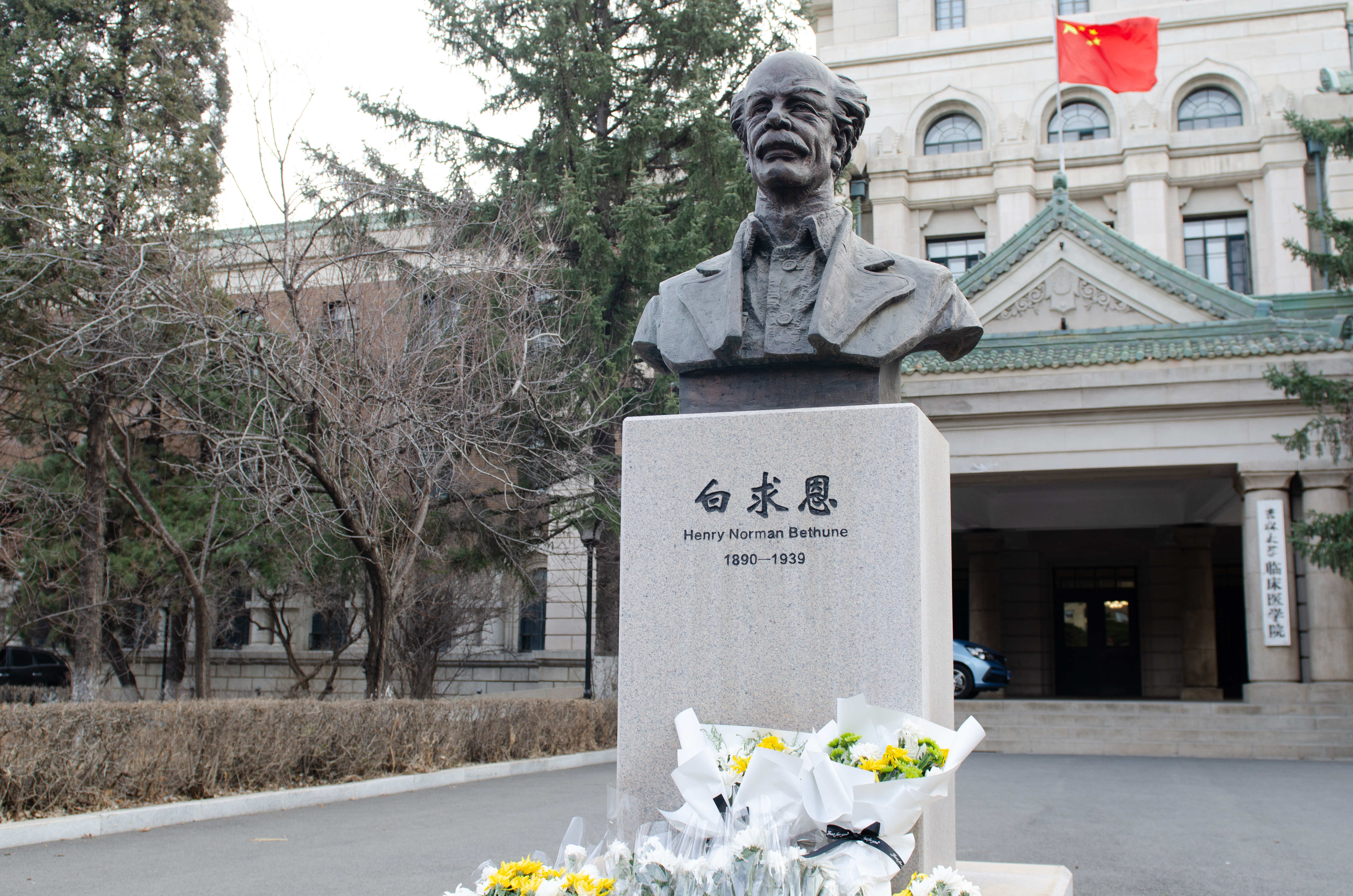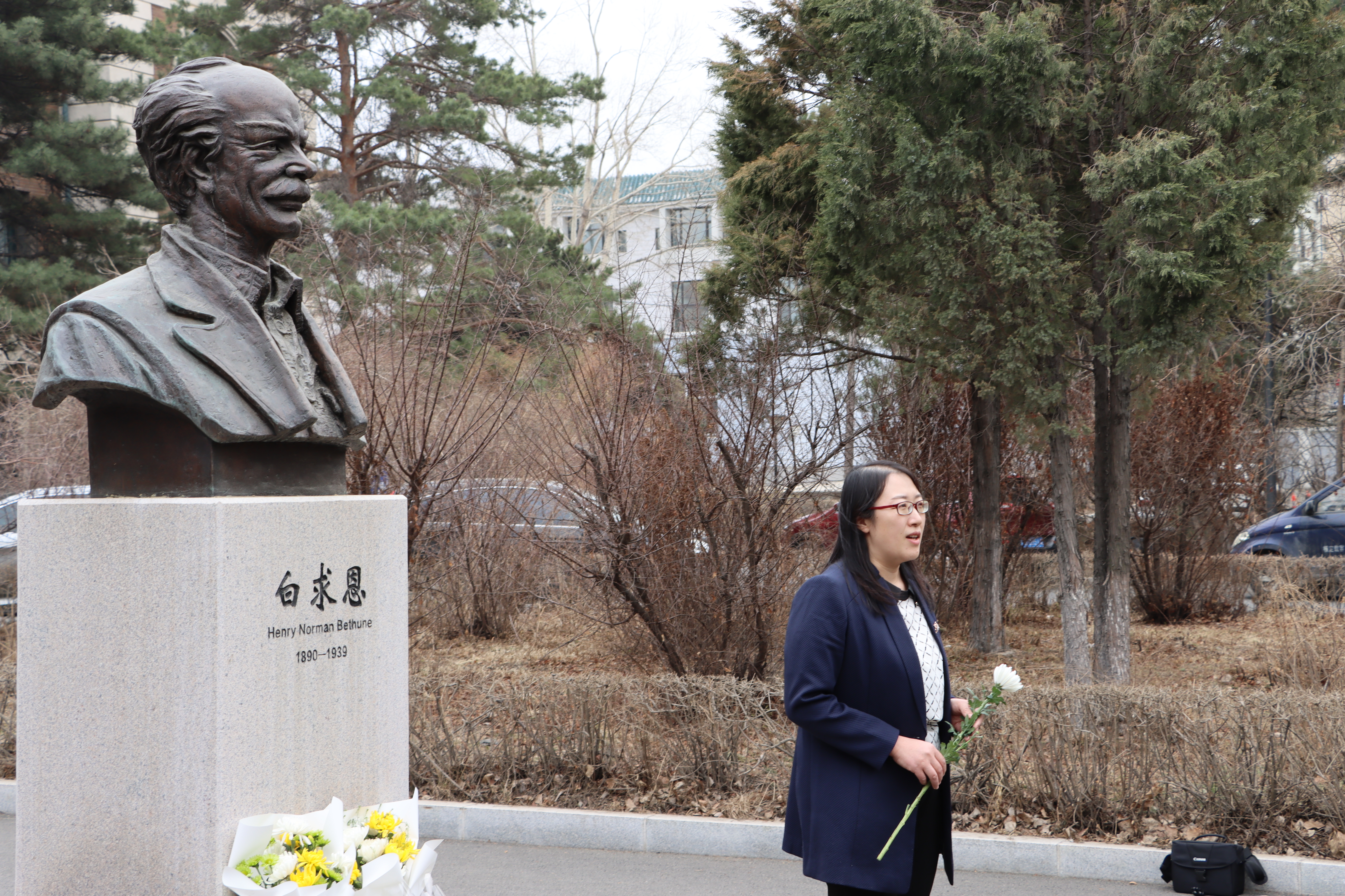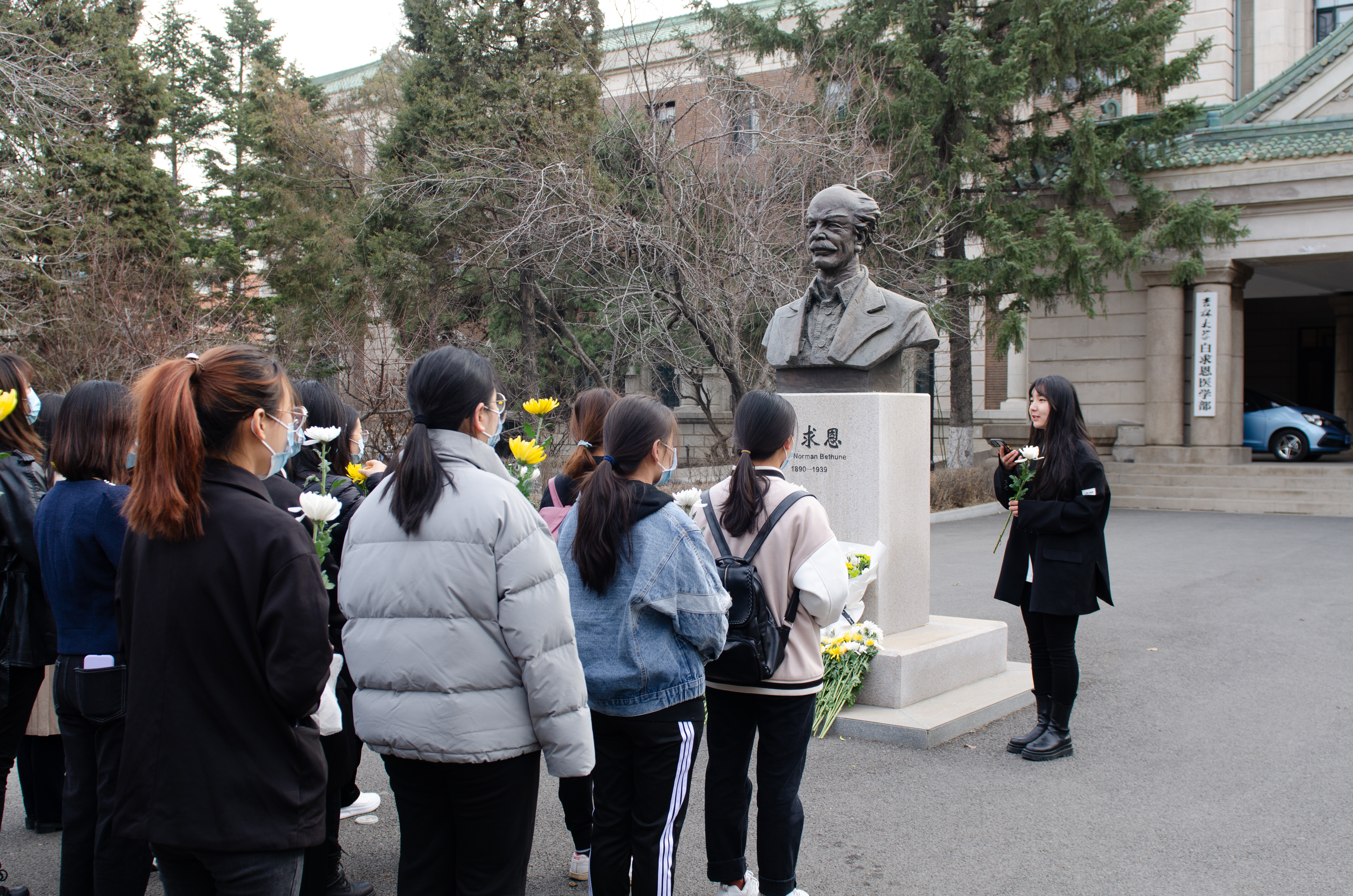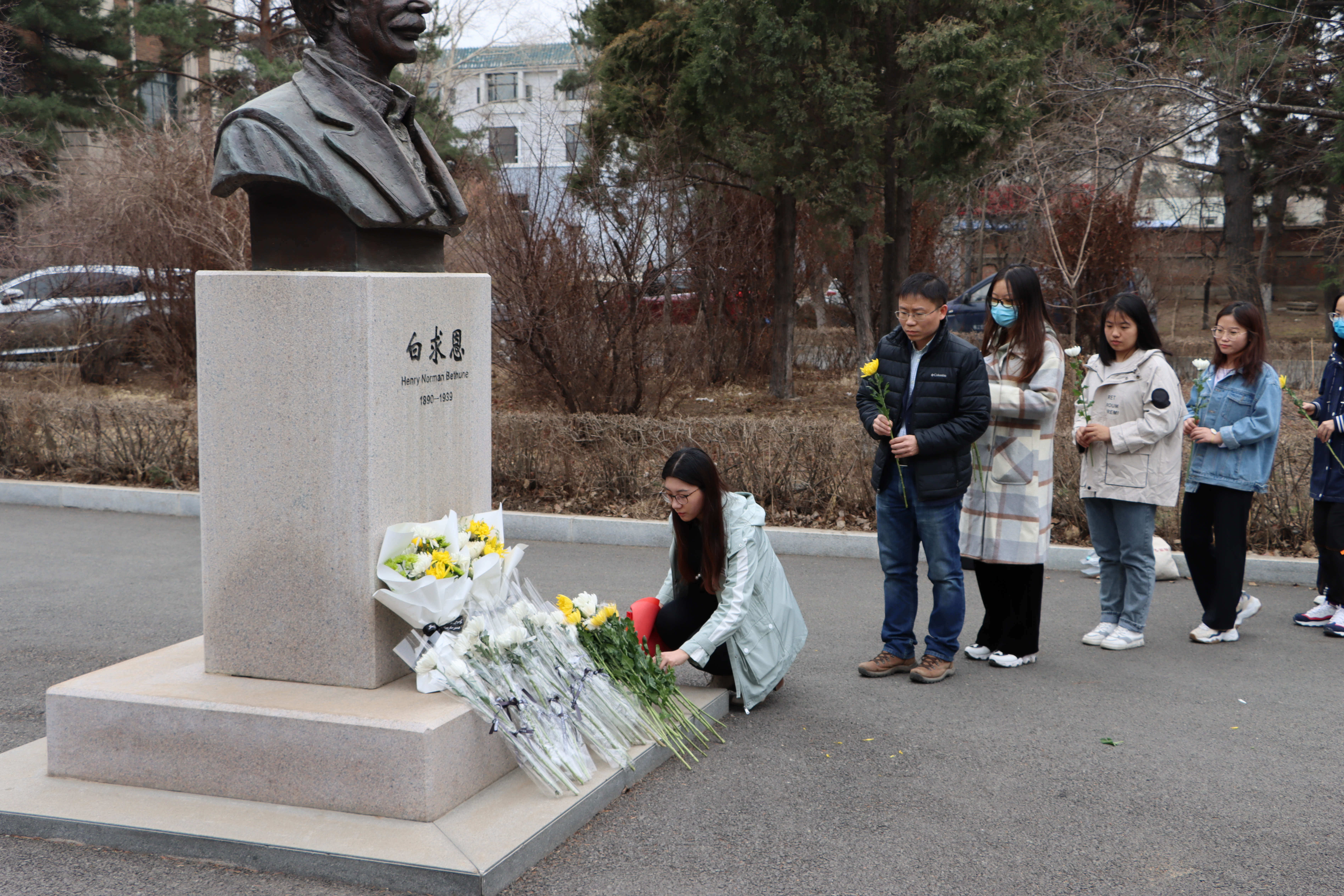 部分学生党员、入党积极分子、共青团员在新民校区医学部白求恩像前开展了以“折菊遥寄,丰碑长存”为主题的清明祭扫活动,祭奠先贤白求恩同志。