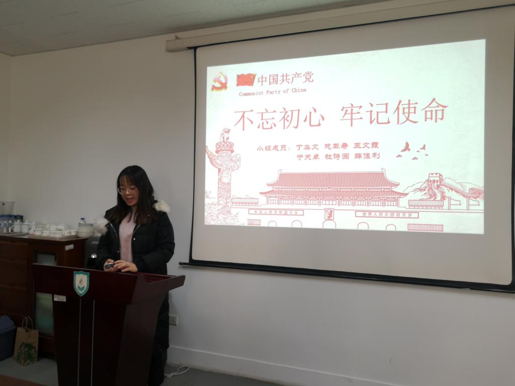 本次活动为学生党员与入党积极分子自行组队,自选主题讲微党课。常方圆老师率先垂范,以其参加校微党课大赛的获奖内容为主题,为同学们上了“传承红色精神,牢记初新使命”的生动精彩的微党课。在活动中学生党员与入党积极分子分为5组,每组根据所感兴趣的内容搜集资料,分别选取了不同的主题:“一生传马终不倦,一脉传承到百年--郑德荣”、“解放的时间--论共产主义的具体特征”、“改革开放四十载,聚焦青年新时代”、“不忘初心、牢记使命”和“光辉的党史”,贴近当前思想、学习和生活实际,贴近时代的主旋律,具有较强的实际意义。