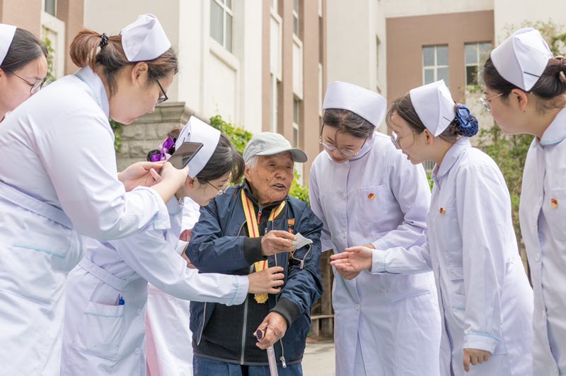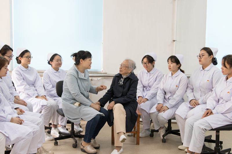 两位老党员和中青年党员们促膝长谈,氛围温馨融洽。牛慧英同志自1945年初正式参加工作,在抗战期间曾跟随国际共产主义战士柯棣华同志辗转各地学习工作,作为亲历者,她深情回忆了往昔的峥嵘岁月,生动再现老白医人的奋斗历程,深深感慨党领导人民创造幸福生活的伟大功绩。张丽华同志是原白求恩医科大学医务处护理部主任,曾主管全校的护理工作,她热爱护理事业、勤恳好学、积极上进,从事临床护理工作四十余年,用一生践行着护理事业。