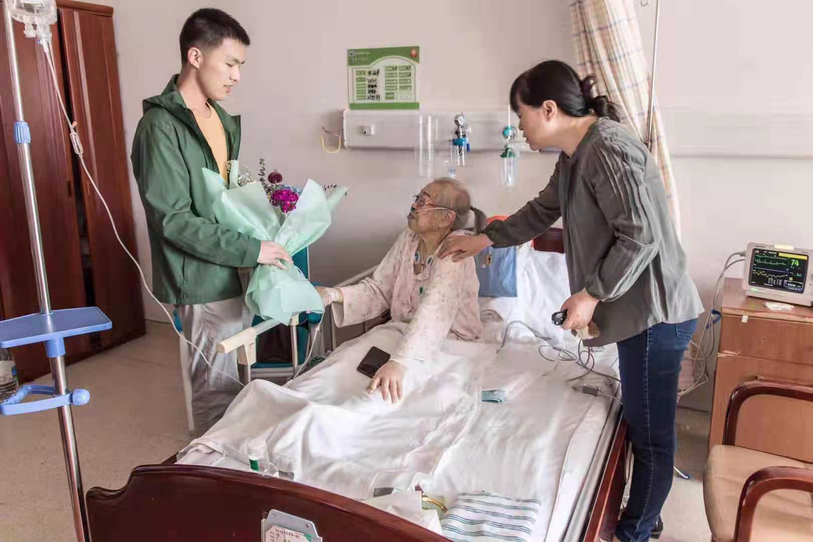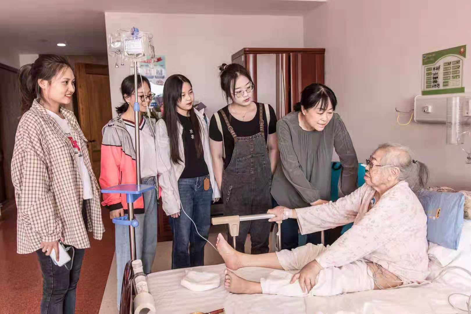 学生第一党支部书记李亚琴老师的带领下,支部成员们一同看望了88岁、因病住院的离休老党员张老师。得知大家来看望自己,正处在康复期的张老师十分激动和喜悦。李亚琴老师与张老师亲切交谈,她握着张老师的手询问了她的身体状况,嘱咐她要保重身体,享受离休的幸福生活。听到这些暖心的话语,张老师流出了感动的泪水。同学们亲切地和张老师交流互动,表达自己对老党员的尊敬与钦佩。